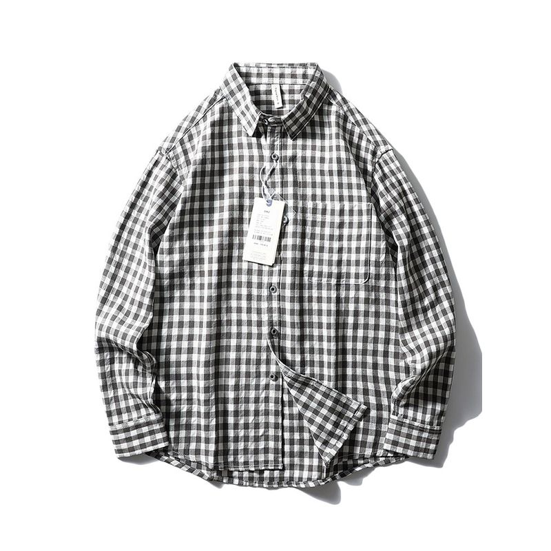 American Retro Lyocell Tencel Black and White Gingham Shirt Men Long Sleeves Spring and Autumn Export Men's Casual Shirt