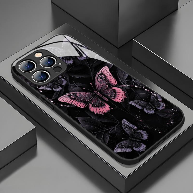 Retro Dark Butterfly Pattern Tempered Glass Phone Case For iPhone 11 12 13 14 15 16 17 Pro Max 17Air 16E 7 8 Plus XR XS X Cover