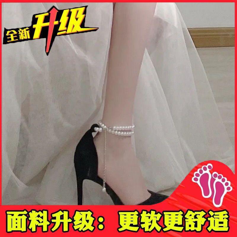 Sandals fairy wind spring and autumn thin heel pointed pearl word with high heels single shoes summer