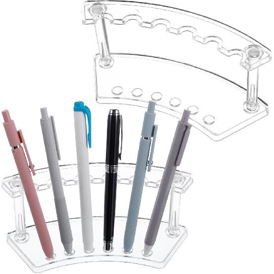 2 PCS Acrylic Pen Stand Pen Display Holder for Vendor Events Clear Rack Beaded Slots Display Eyebrow Makeup Brush Rack Organizer for School Office
