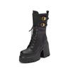 Women's Mid-calf Boots High Quality Leather Casual Boots Height Increase Platform Boots Lace Up Thick Heeled Booties Botas Mujer