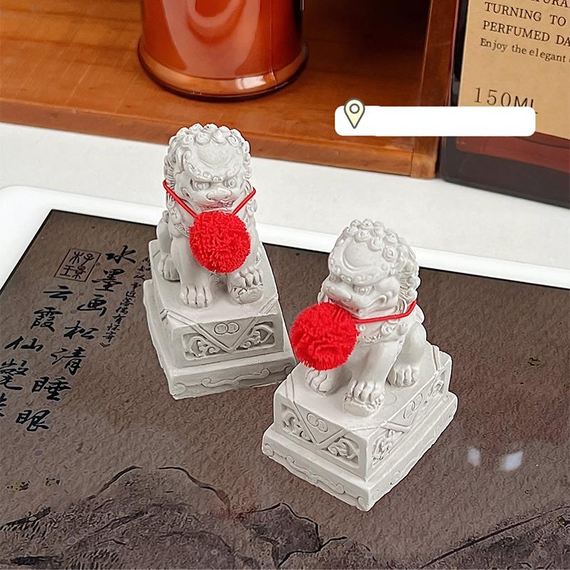 2 Pcs Chinese Chic Feng Shui Awakening Lion Stone Figurines Mini Stone Lion Statues Desktop Living Room Doorway Decor Ornaments