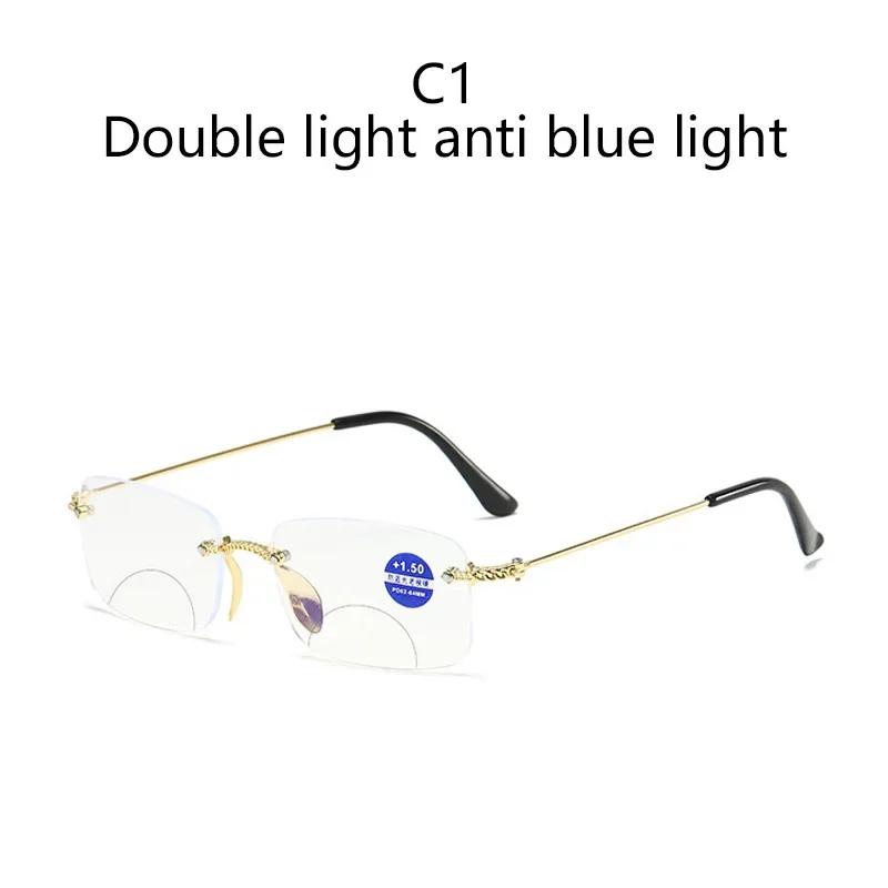 New Reading Glasses Anti Blue Light Double Light Presbyopic Glasses For Far Near Function Glasses Rimless Trimming Flat Lens