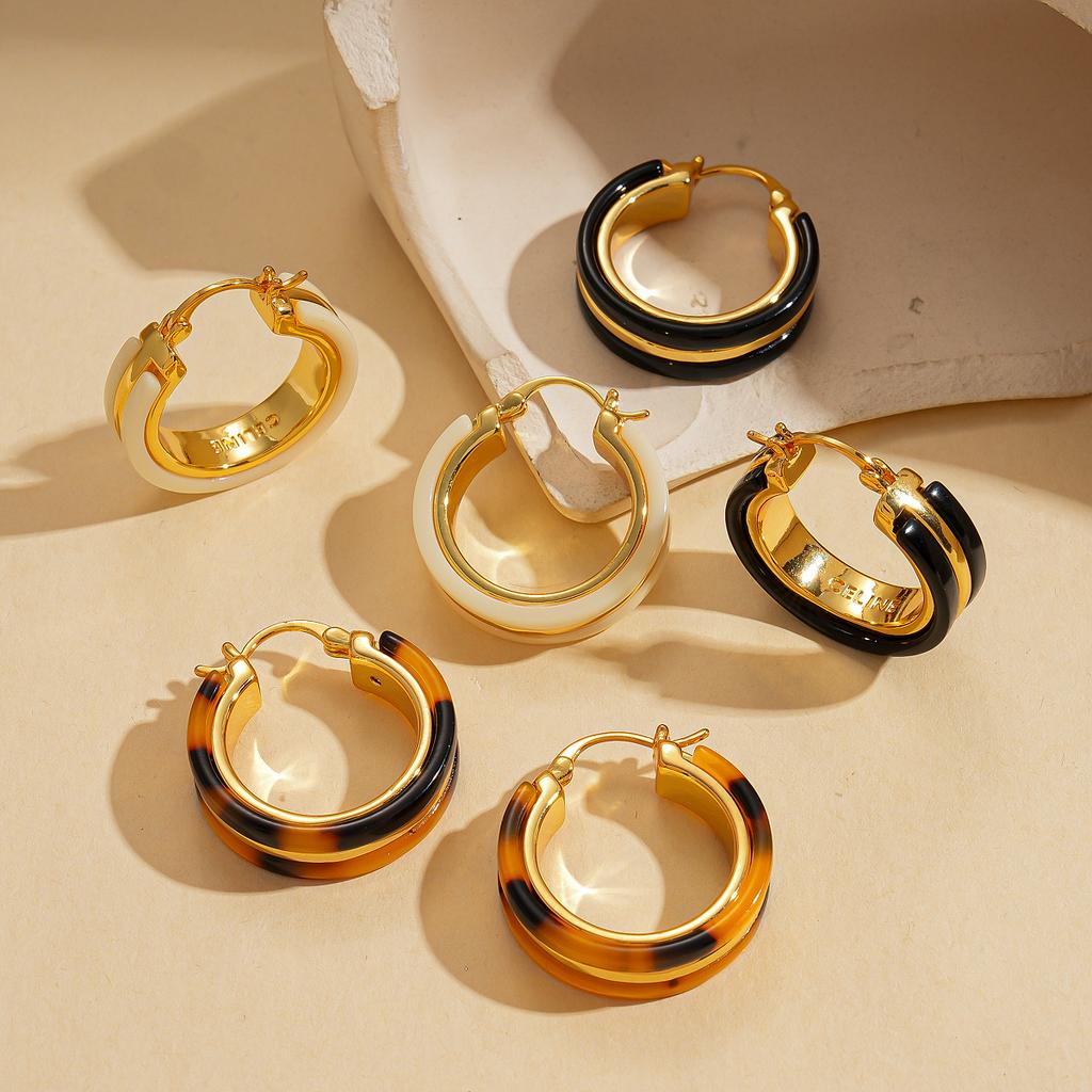 18K real gold electroplated acetic acid plate geometric round ear buckle simple niche earrings