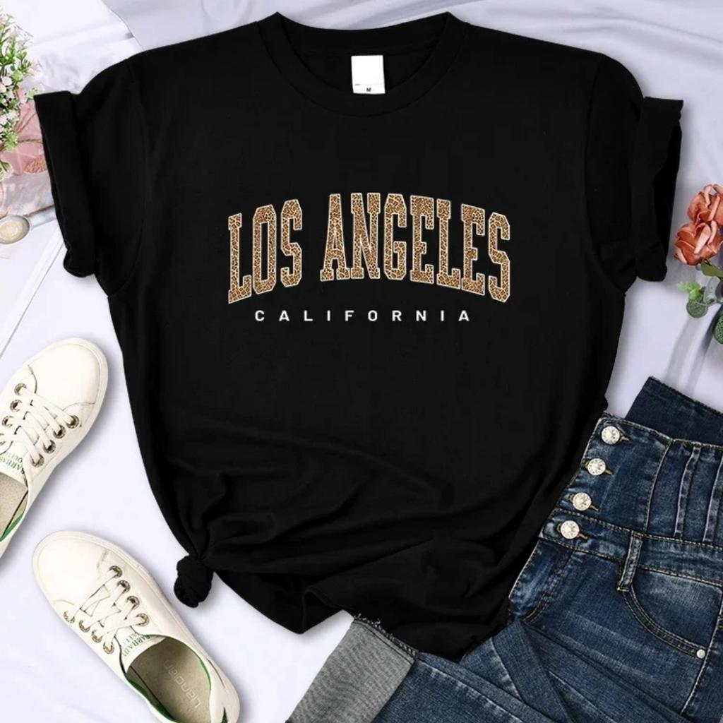 Los Angeles, California USA City Leopard Print T-Shirt Women Casual Fashion Short Sleeve Summer Breathable Soft T Shirts Female