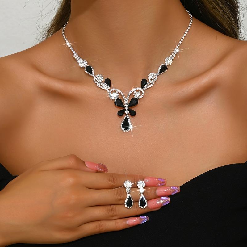 3 Pieces/set of Luxurious Sparkling Water Droplet Shaped Inlaid Zircon Necklace Earrings, Women's Wedding Banquet Jewelry Gifts