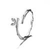 925 Silver small leaves micro-insert opening ring simple fashion sweet temperament leaf ornaments