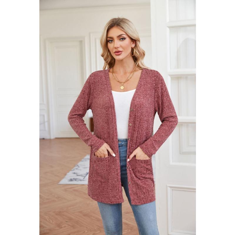 Autumn and Winter Solid Color Loose Long Sleeve Pocket Cardigan Jacket Women's New Style