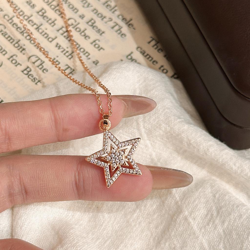New full diamond hollow five-pointed star pendant necklace ins romantic line collarbone chain neck chain batch