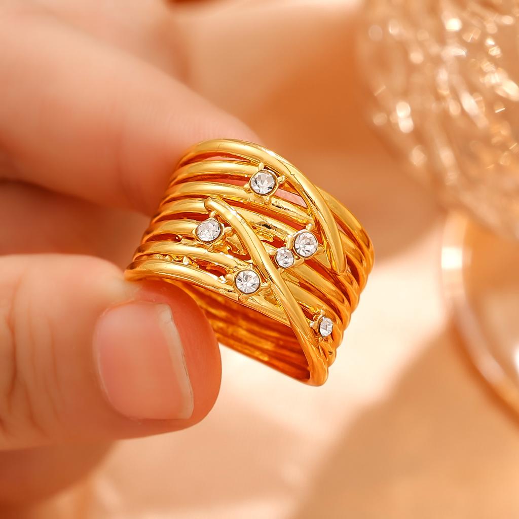 Corrugated design personalized winding minimalist ring opening versatile zircon exquisite ring
