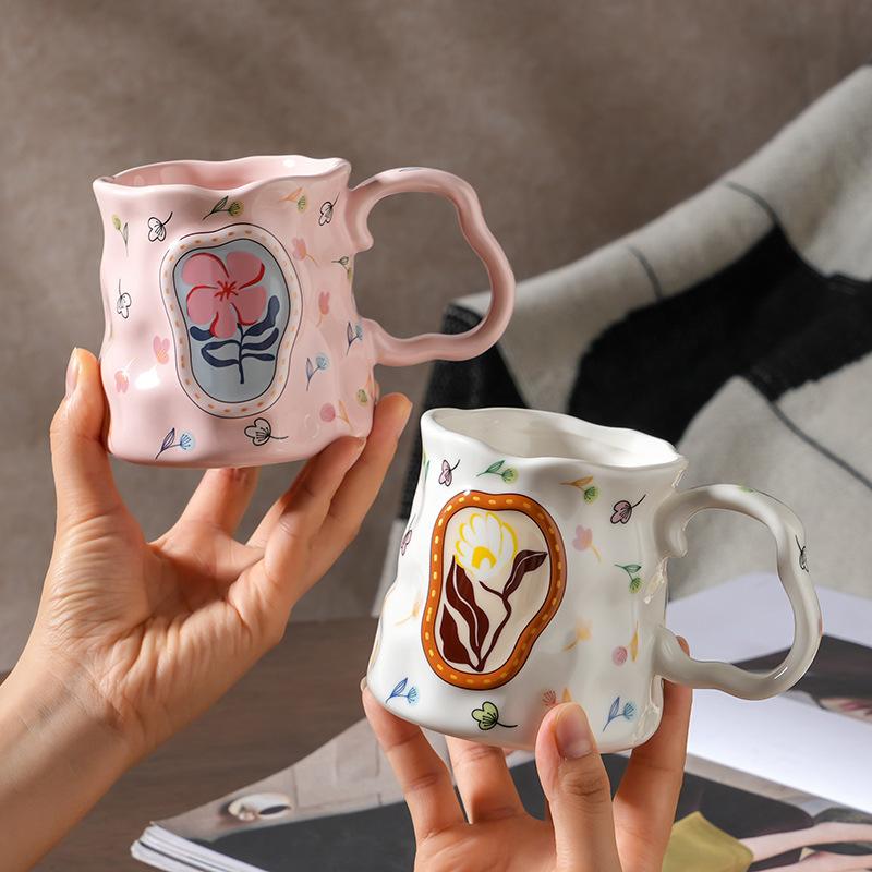 Hand Pinched Original Ceramic Mug High Aesthetic Design for Office Home Breakfast Coffee Tea Cup Gift