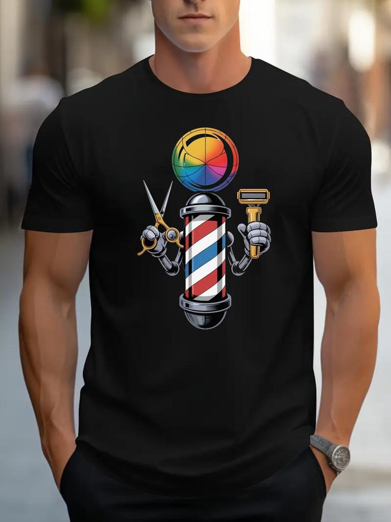 Barber Pole Rainbow Basketball Graphic Print Mens Black Cotton Casual Short Sleeve TShirt