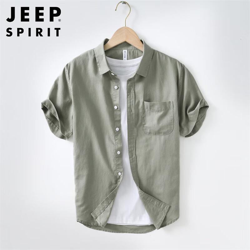 JEEP SPIRIT Men's Breathable Cotton-Linen Short Sleeve Shirt
