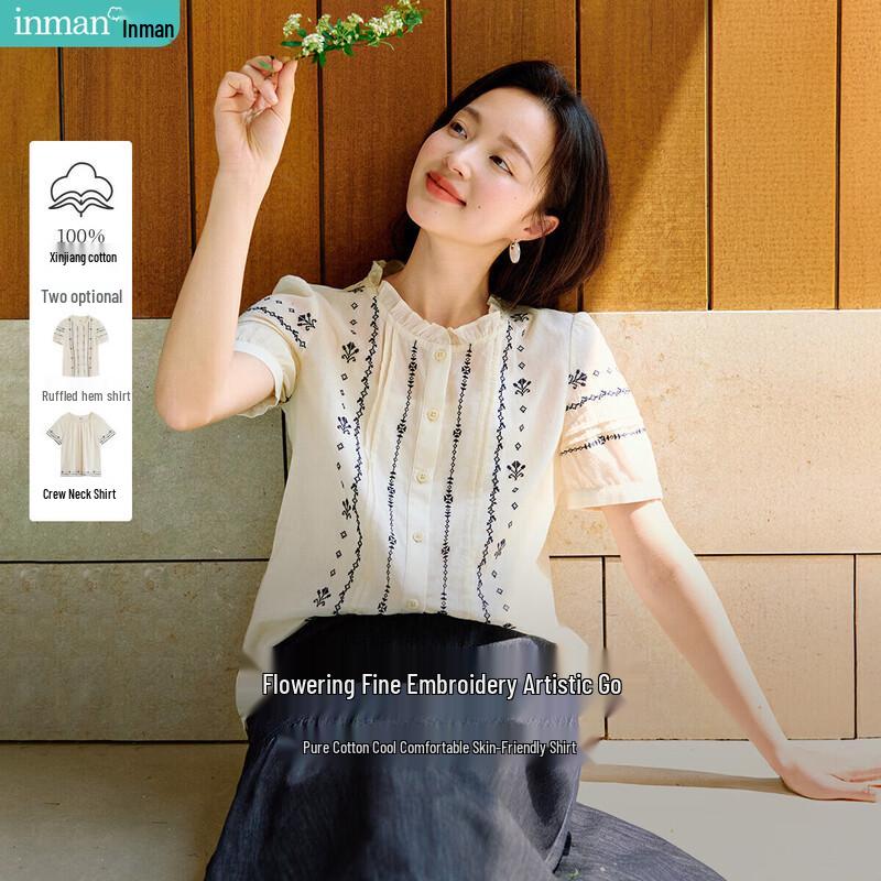Inman Women's French Embroidered Short Sleeve Blouse
