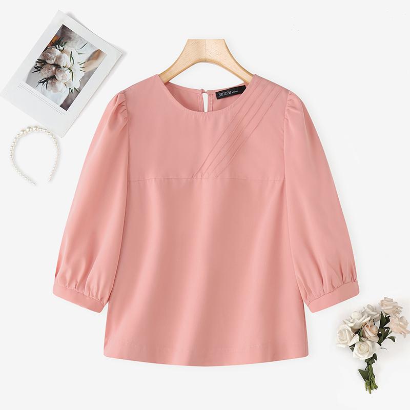 ZANZEA Women Casual Round Neck Solid Color Half Sleeve Blouse