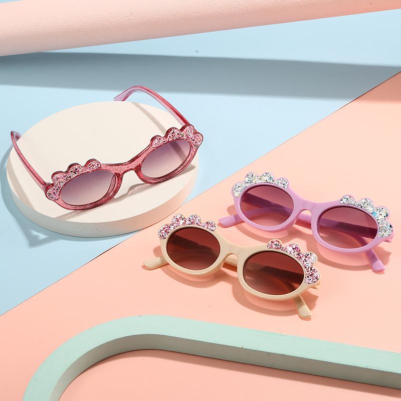 New Kids Sunglasses Round Retro Sweet Diamond Inlaid Boys Girls UV400 Fashion Children Sun Glasses Party Eyewear