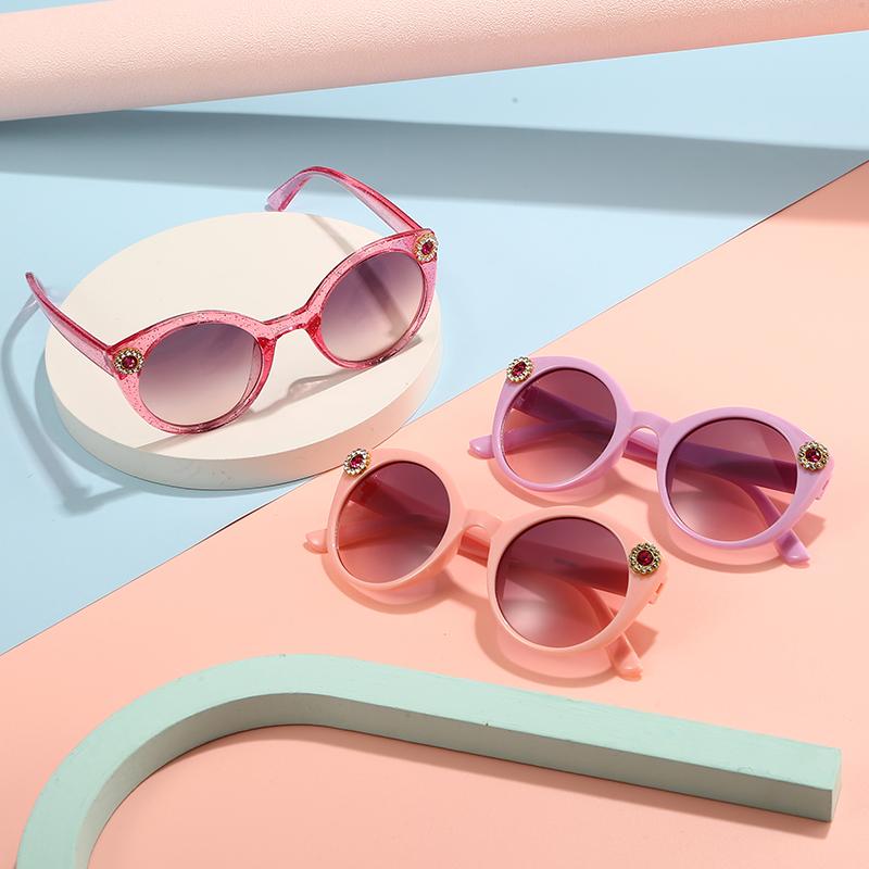New Kids Sunglasses Round Sun Glasses Trend Boys Girls UV400 Protection Inlaid Diamond Minimalist Fashion Eyewear
