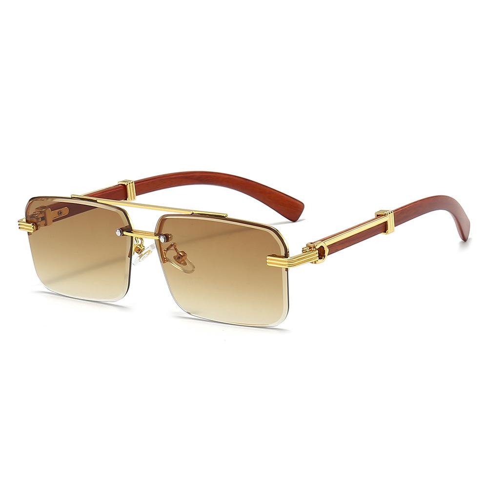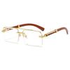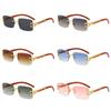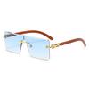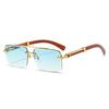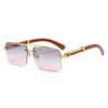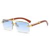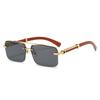 Wood Grain Square Rimless Sunglasses UV400 Retro Women Men Designer Brand Eyewear Shades Oculos Female Gafas