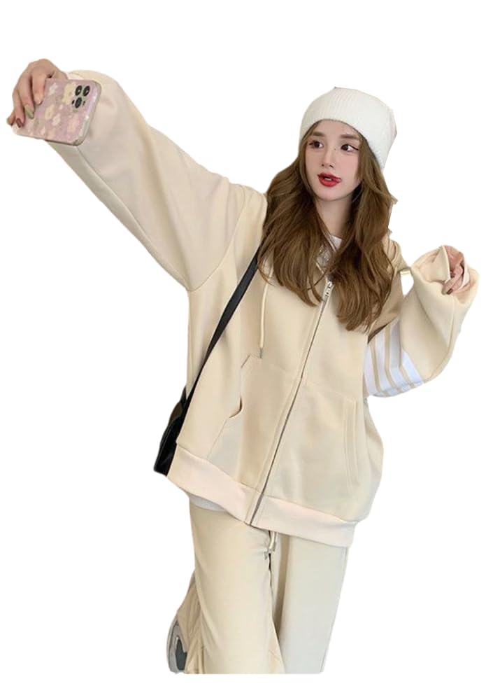 KTNCFD Tracksuit Hoodie and Long Harajuku Loose Women's Korean-Style 2-Piece Set, Pants, Sleeve, Style, Fit, Sportswear, Spring/Autumn,