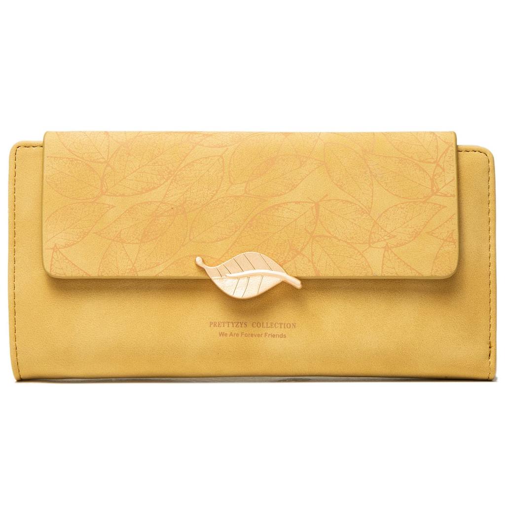 SEMIYA Women's Tri-fold Long Wallet with Coin Purse, Card and Bill Storage, Large Capacity (Yellow)