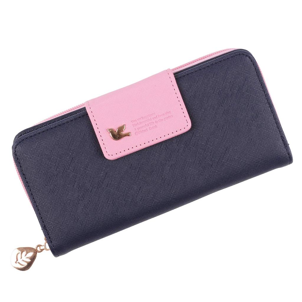Donalee Long Wallet, Zip-Around, Bifold, for Girls and Women (NavyPink)