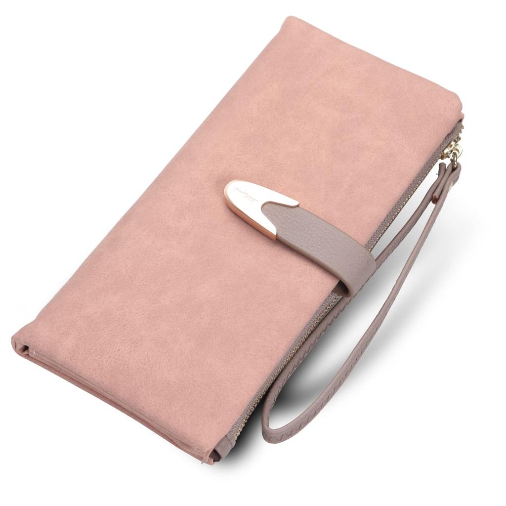 Stylish women's long wallet with multiple pockets (pink)