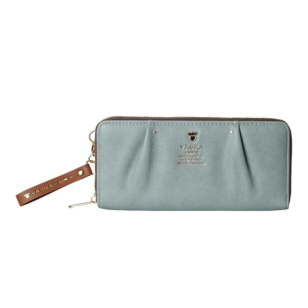 VASKA by moz ROXY Women's Long Wallet, Large Capacity, Round Zipper Closure, Synthetic Leather with Strap, Moose Print, Nordic Design, VS-0321, Blue