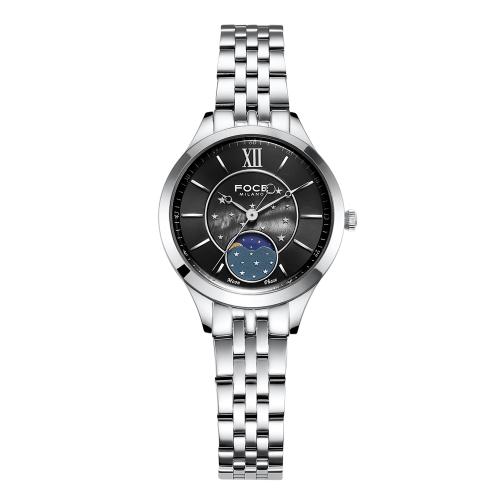 [FOCE] FOCE 34mm Women's Moonphase Metal Watch FM7603LM-BK