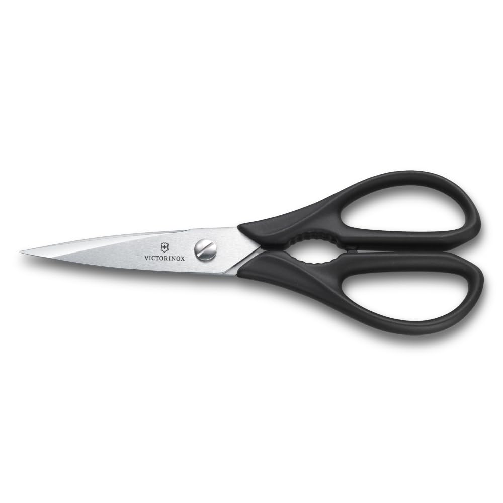 VICTORINOX Kitchen Scissors for Opening Jar Cracking and with Sharp Stainless Steel Scissors, Multi-Purpose Caps, Nuts, More, Black, Microwave-Safe