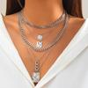 Personalized Niche Metal Chain Stacked Necklace, Sweet And Cool Snakeskin Pattern Geometric Pendant Necklace For Women