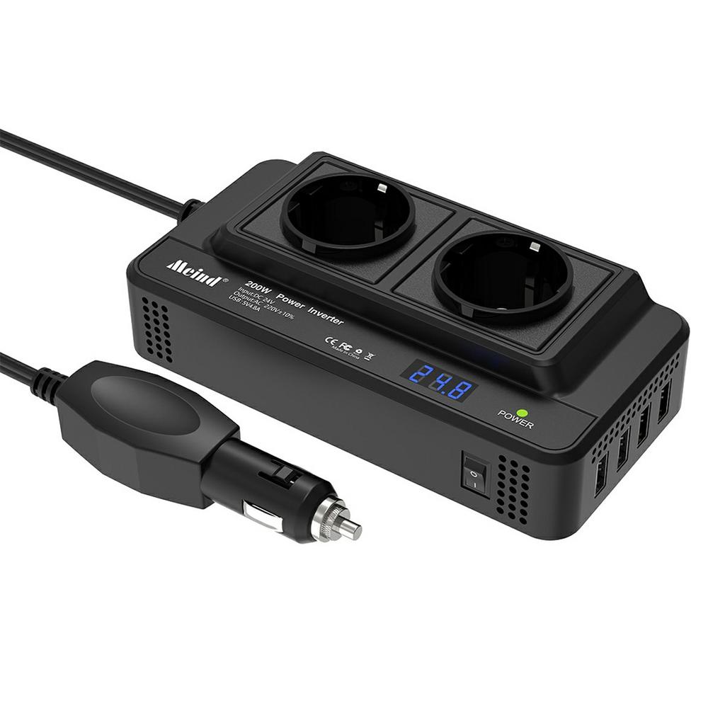 MEIND M8300 24V to 220V High Power 200W Car Inverter with Dual EU Power Socket + 4 USB Ports
