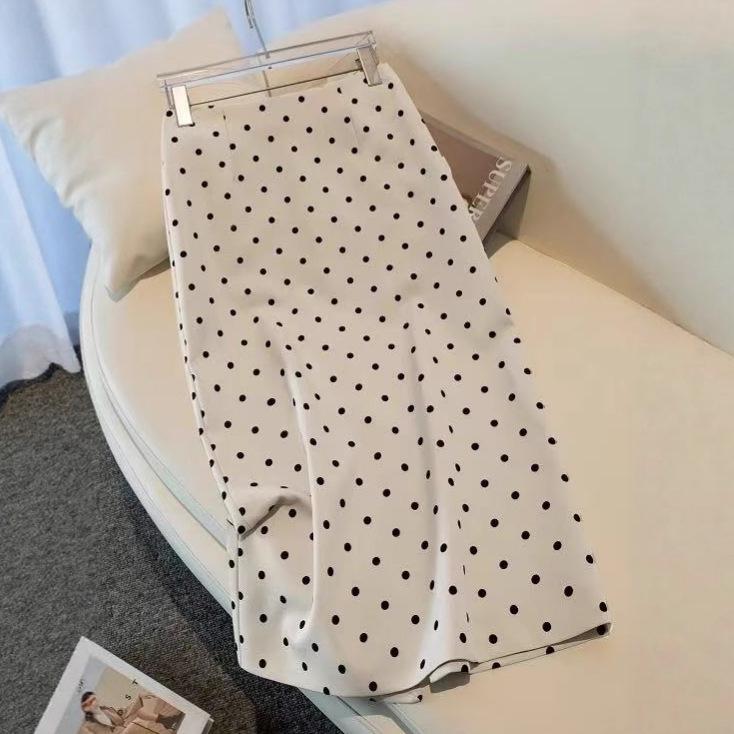 Plus Size Black Polka Dot A-Line Skirt for Pear-Shaped Women - Slimming Autumn Mid-Length Style