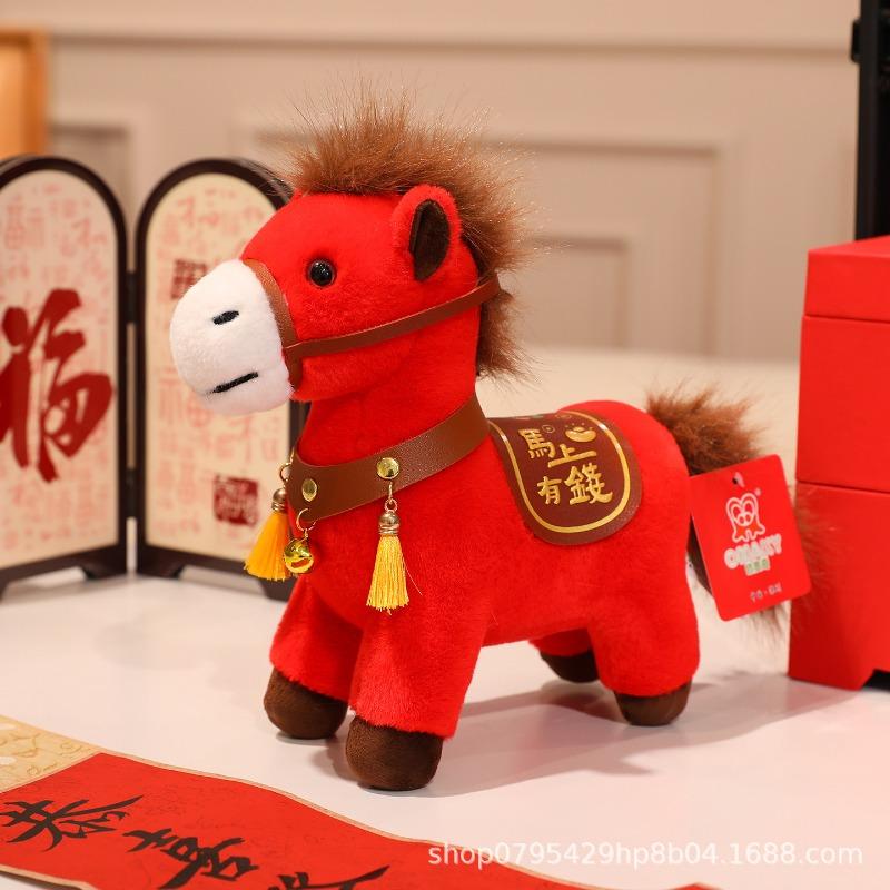 Horse mascot doll plush toy red zodiac horse doll ornament New Year's event gift
