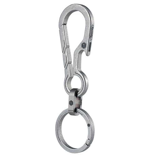 KeyUnity KM18 Titanium Bottle Opener Keychain, Rust-Resistant, Lightweight, 2-in-1 Bottle Opener with Small Carabiner, Silver, Men's Gift