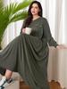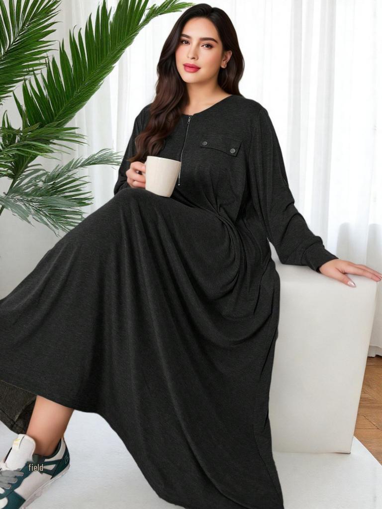 Plus Size Autumn Street Fashion Loose Knit Dress - Solid Color, Round Neck, Long Sleeve