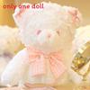 Plush Rabbit Bear Doll With Lace And Checkered Bow Decor For Girls Kids Birthday Gift And Sleep Support
