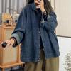 2026 Cross-Border Women's Denim Jacket with Wrinkle Texture Design