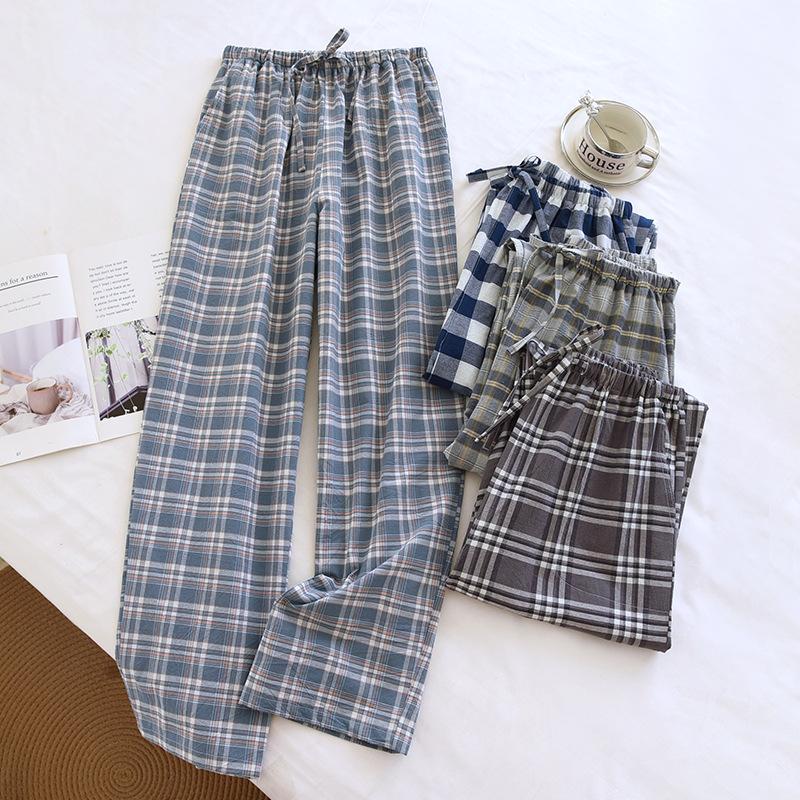 Men's Elastic Waist Lounge Pants - Summer Lightweight Checkered Style with Simple Pockets, Suitable for Casual Wear