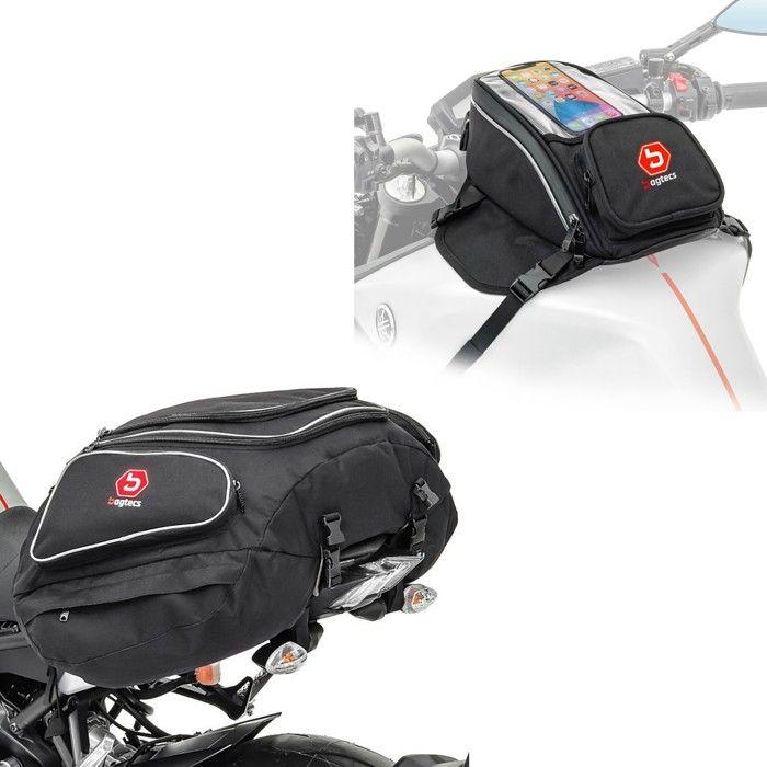 Moto sacoche de réservoir MR4 avec aimant et fixation par sangle 9Ltr + Moto Sacoche de selle X50 Porte-bagages arrière 50Ltr