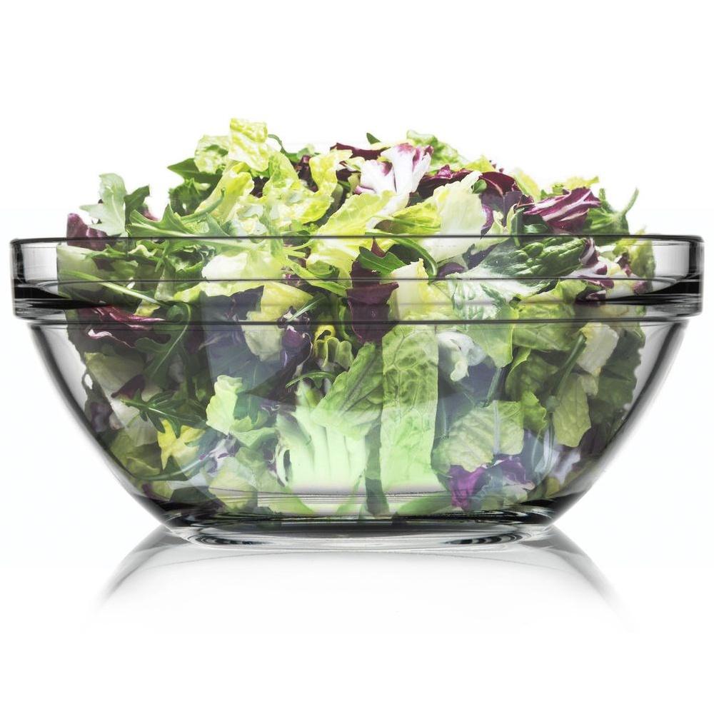 A large glass bowl, perfect for serving salads or snacks. Its exceptionally versatile design will make it a popular choice. Useful in any home, both for everyday meals and special occasions. The bowl has an elegant appearance, looks impressive on the table, and complements other tableware perfectly. Manufactured to European standards.