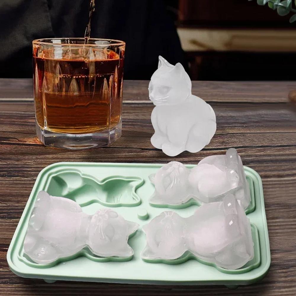 3D Cat Shape Ice Cube Mold Silicone Ice Tray for Whiskey Cocktail Ice Maker for Summer Drink Flexible Easy Release Reusable Mold