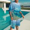Summer Demon OX Smiling Face Pattern Men's Shorts Sets Casual Street T Shirts+Shorts 2PCS Outfits 3D Print O-Neck Tracksuit Suit