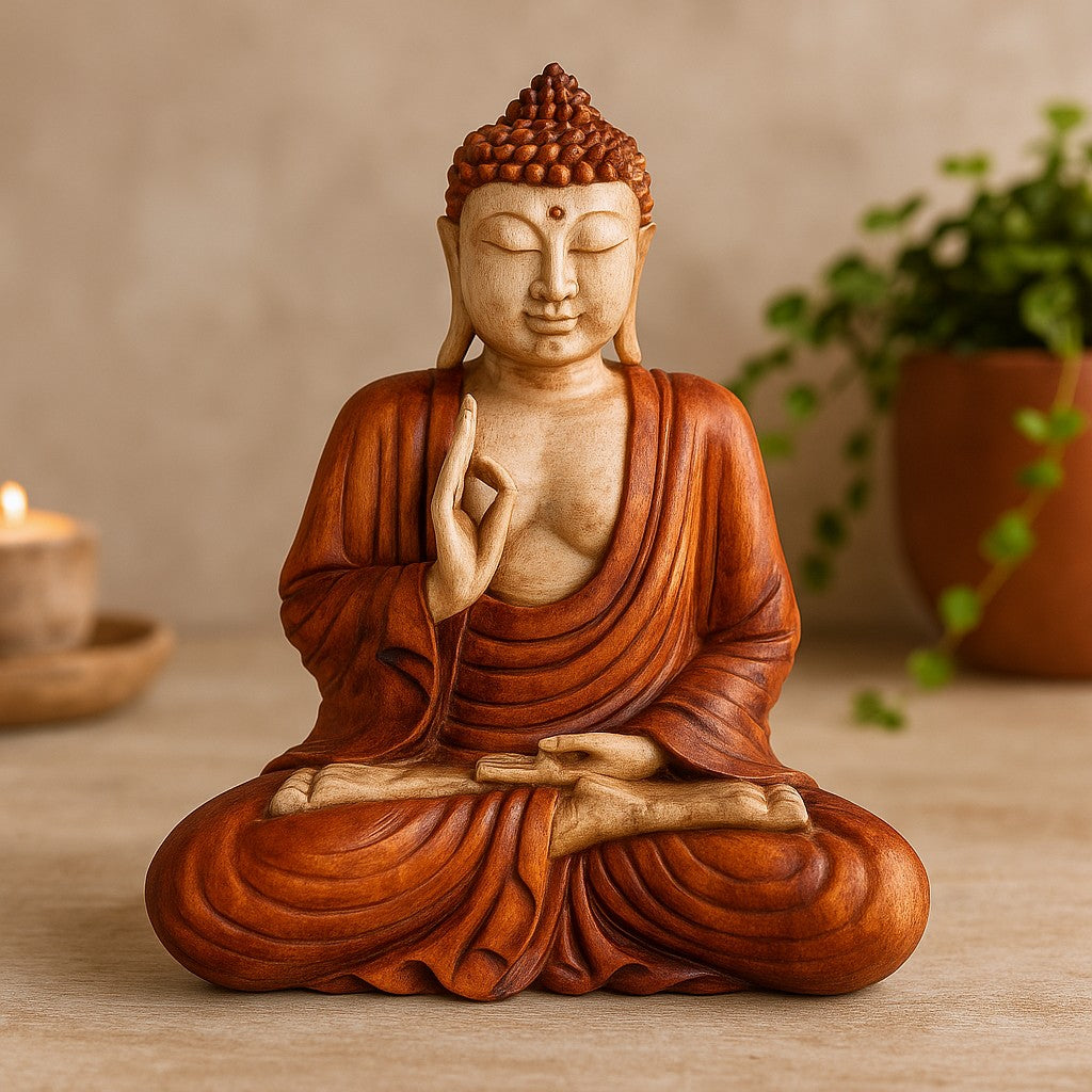 Buddha Statue Hand Carved Wood Teaching Pose 30cm