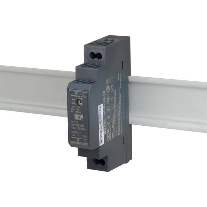 Alimentation AC-DC - MeanWell - HDR-15-12 - 12VDC - 1.25A - Ultra-mince DIN