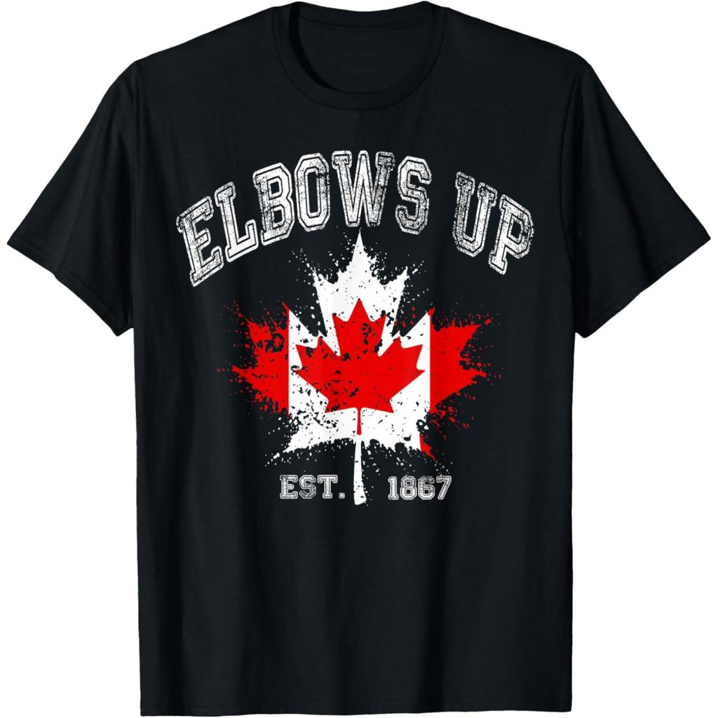 Elbows Up Canada Men Tshirt Summer Casual Funny Retro Maple Leaf Graphic Y2k Tops O Neck Short Sleeve Tees Male Clothing