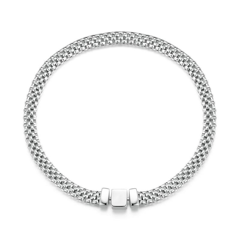 Bamoer 925 Silver Classic Square Buckle Bracelet Retro Braided Silver Chain Link for Women Platinum Plated Fine Jewelry