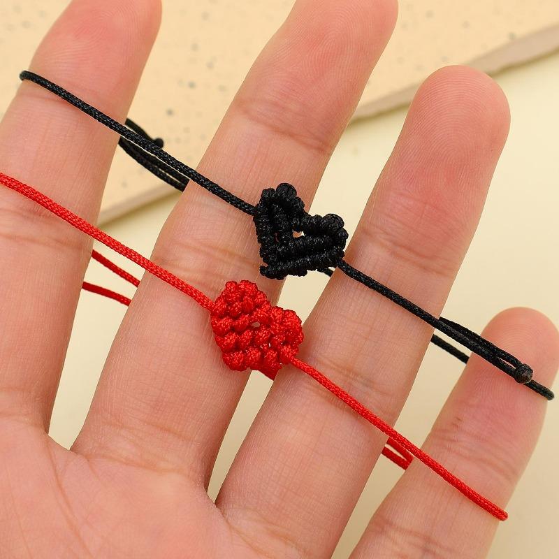 1pair Adjustable Red Rope Heart Bracelet Handmade Woven Heart Shaped Bracelet Jewelry Fashionable Couple's Gifts Bracelet Gifts
