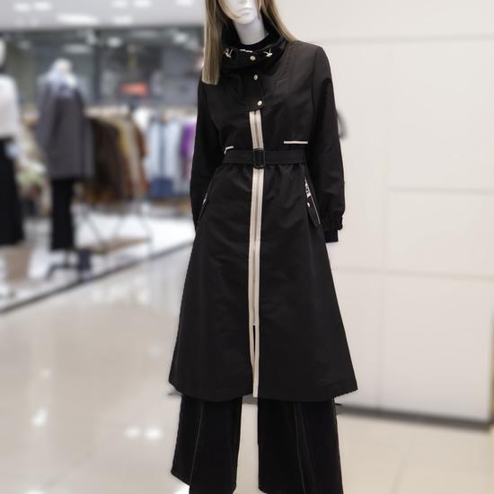 Women's Color Block Long Trench Coat with Detachable Hoodie