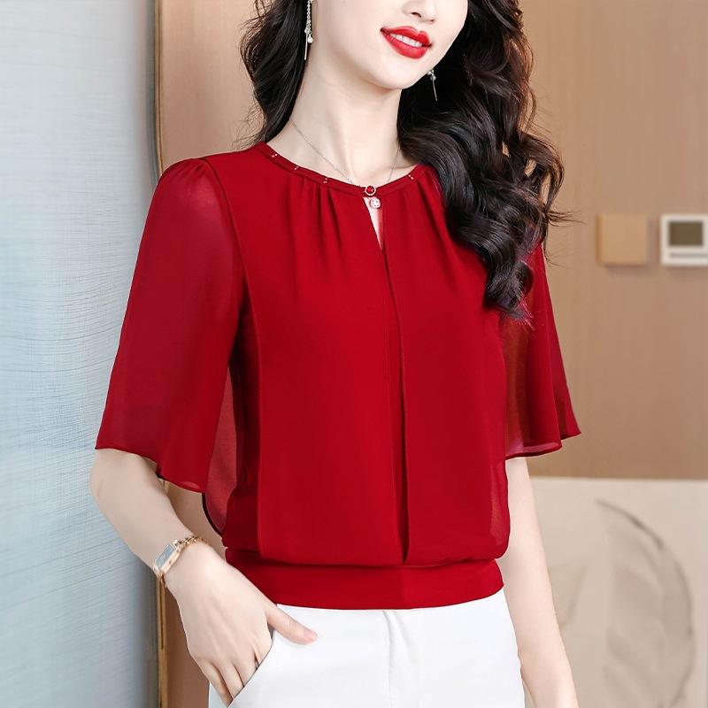 Summer Clothing Half Sleeve Chiffon Blouse Fashion Loose Women Tops Solid Color Casual Pullovers Shirt