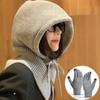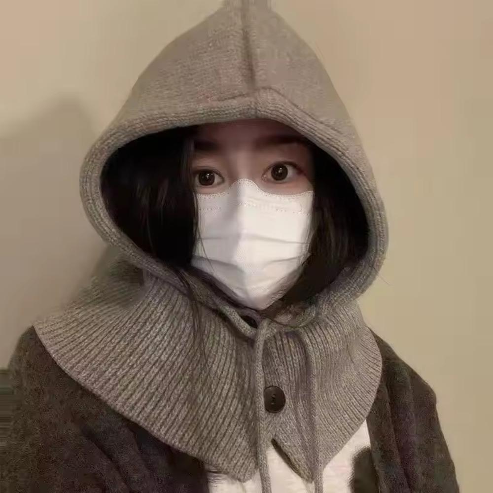 Winter Balaclava Hats Knitted Hooded Caps Women Korean Style Outdoor Warmer Drawstring Hats One-piece Neck Collar Beanies Cap